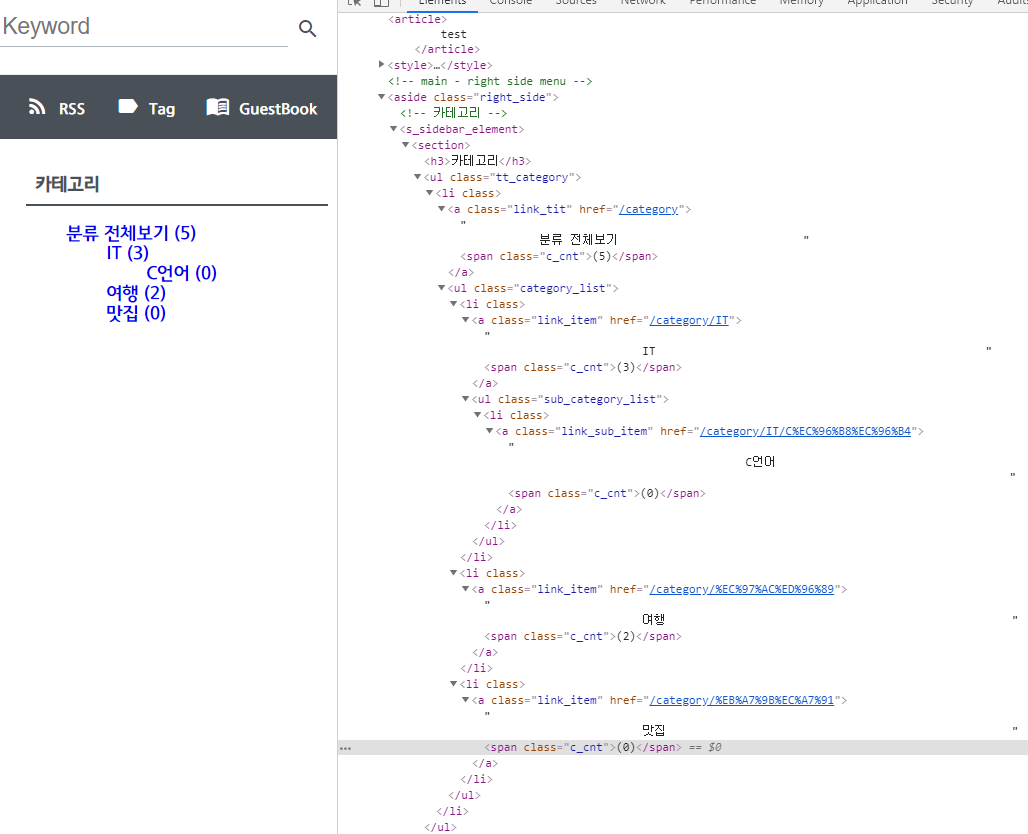 오른쪽 메뉴에서는 제일 처음에 카테고리가 나오는 것이 사람들이 다른 글을 보더라도 접근성이 높아질 거 같습니다.