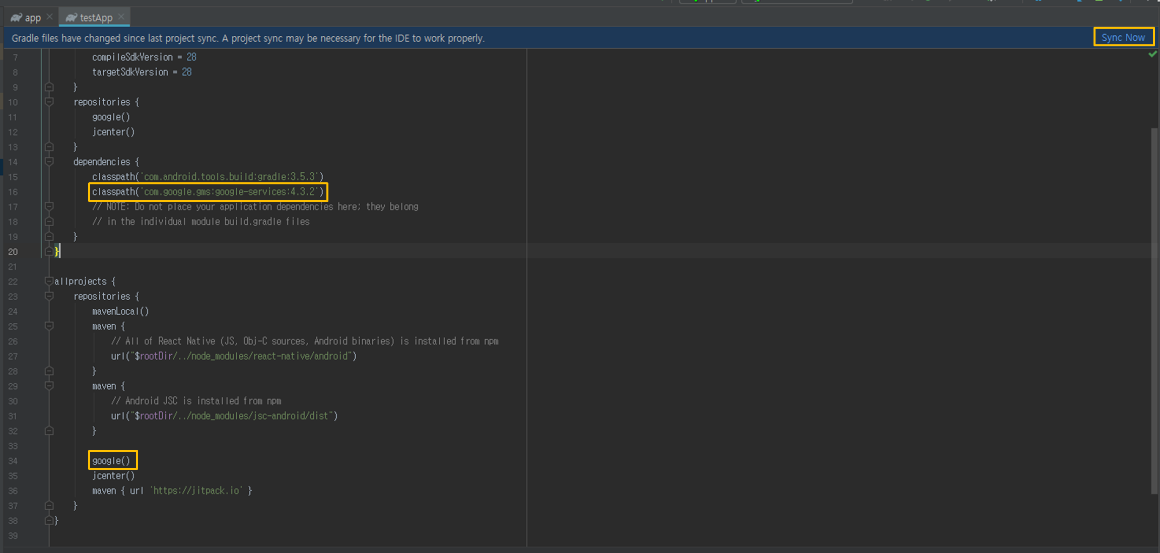 build.gradle 수정 후 idle의 sync now 버튼을 클릭
